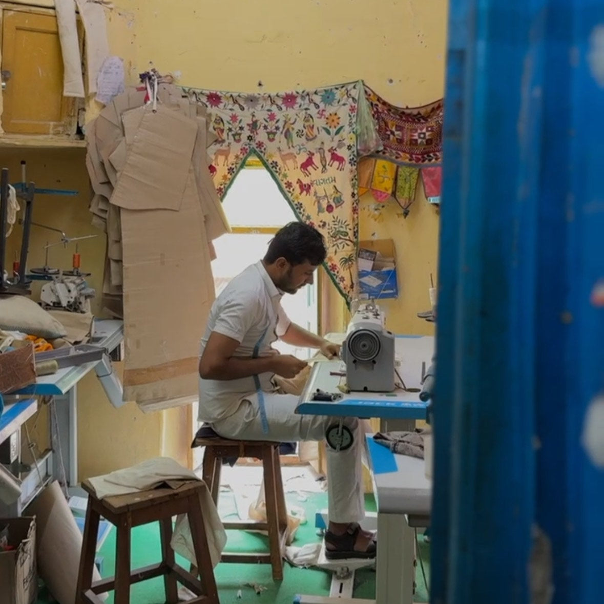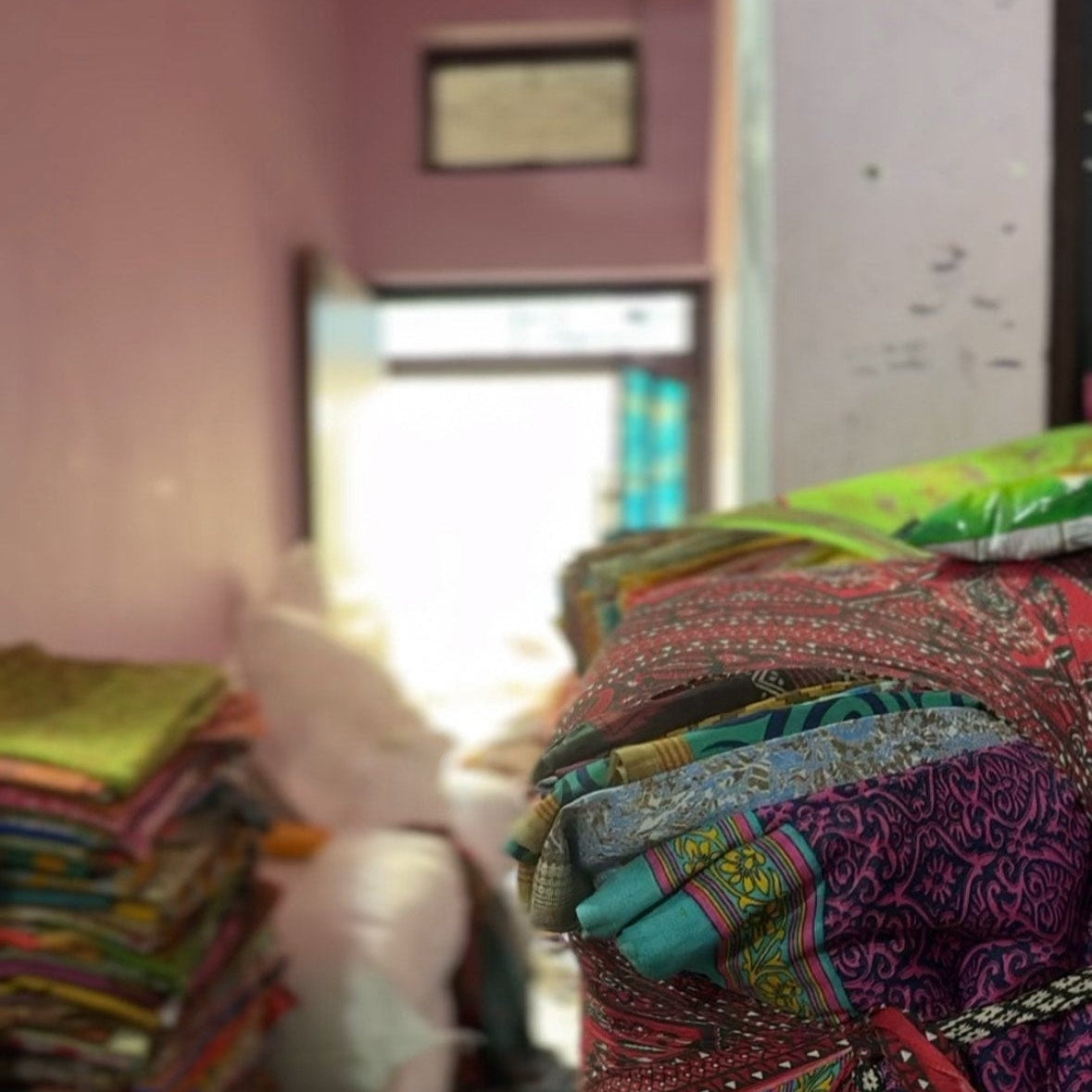 Sárí je tradiční indický oděv. Dlouhý pruh látky, který ženy nosí omotaný kolem těla. Často je předáván z generace na generaci a nese v sobě stopy minulosti. Během svého pobytu v Indii jsem vybírala starší kousky s krásnými barvami a jemným hedvábím. Čas na nich mohl zanechat drobné stopy, a tak jsme je využili podle jejich stavu. Z větších celků vznikly kimona či šaty, a ze zbytků jsme vytvořili malé šátky.
