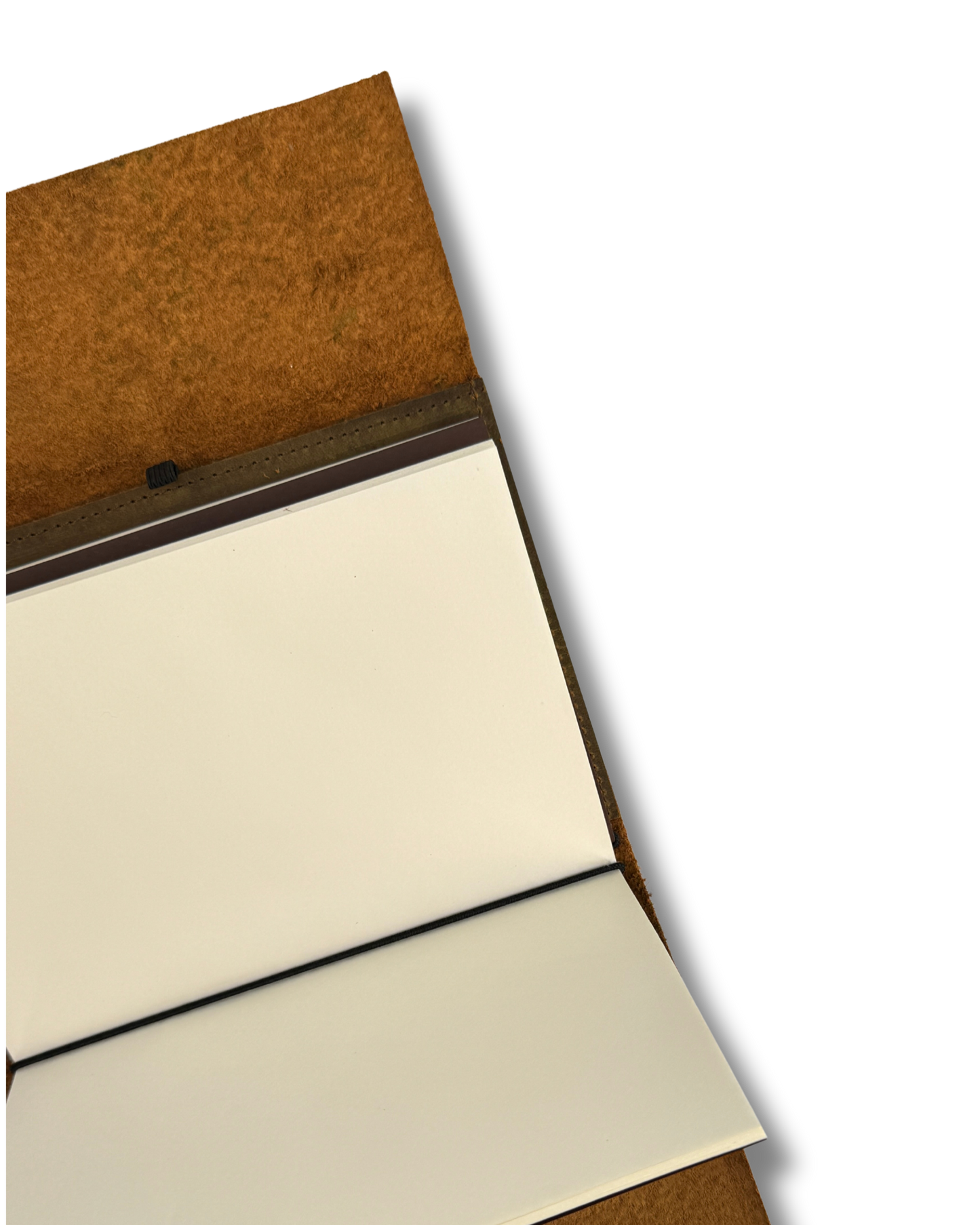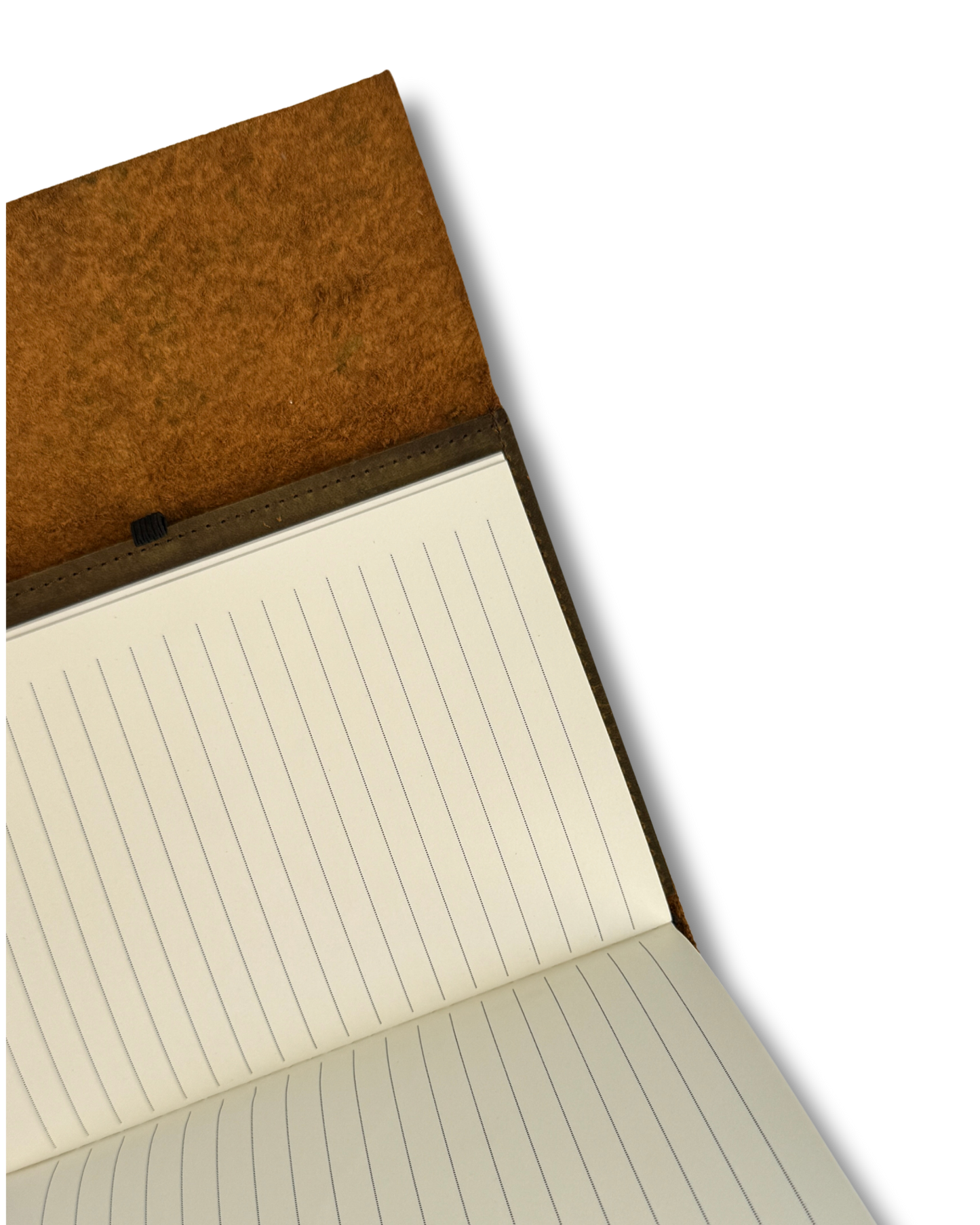 Uvnitř se nacházejí dva vyměnitelné bloky jemného krémového papíru, které si můžete zvolit podle potřeby: linkovaný, nelinkovaný nebo mix obojího. Oba bloky lze po dopsání snadno vyjmout a nahradit novými. Náhradní papírové náplně jsou u nás k dostání samostatně. Deník má navíc kapsu a gumičku na tužku, aby byl ideálním společníkem pro každodenní zápisky, cestovní deníky i hluboké myšlenky.